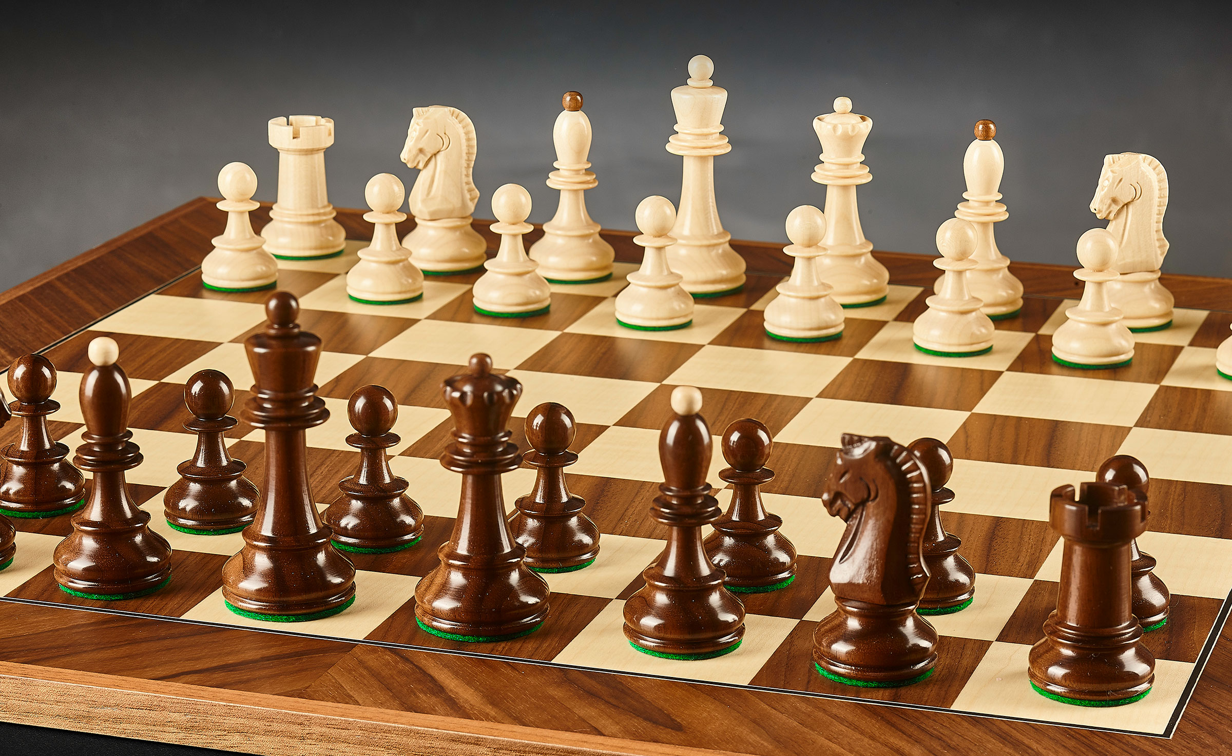 - king's height 89 mm, base diameter 37.5 mm - hand turned and finished pieces (gallery) - detailed hand carved knights - possible purchase of extra queens (+30€) - weighted pieces - felt cushioned - several layers of special coat and final polishing - housed in a basic box - every set comes with certificate of authenticity, which is made to recipient ![]() |